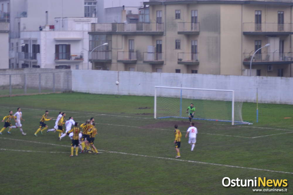 L’Ostuni supera il momento negativo e prova ad impensierire la difesa ospite. Al 20’ Turitto ci prova con un tiro cross parato a terra da Donateo. Al 32’ Zizzi di testa sfiora il palo con l’estremo ospite battuto.