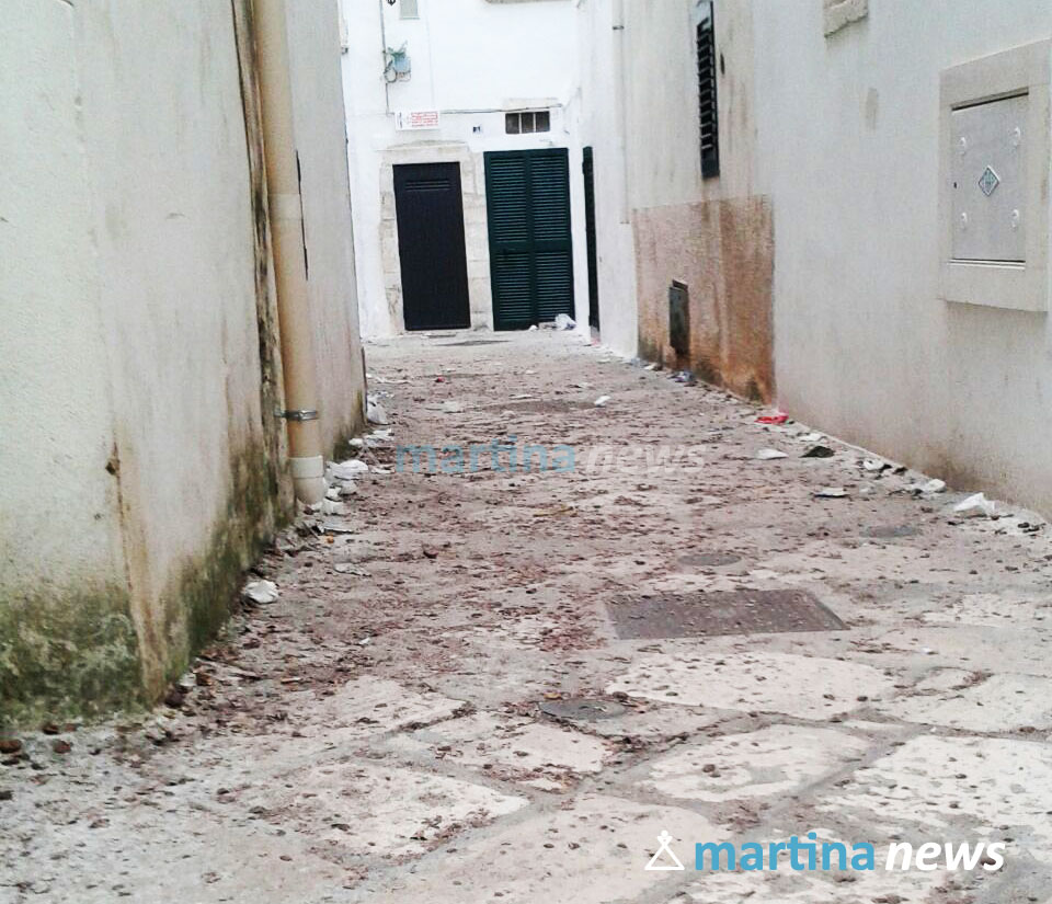 Da venerdì pomeriggio fino a domenica, Martina Franca è stata sommersa da persone provenienti da tutto il sud Italia per vedere la Casa Europea di Babbo Natale, così come è stata pubblicizzata, solo che l’evento ha attirato così tanta gente da cogliere impreparati, evidentemente, anche gli organizzatori. Senza entrare nel merito della qualità dell’offerta, quello che sarebbe opportuno sottolineare è che già l’anno scorso la manifestazione Perbacco che Vicoli aveva portato a concentrarsi nel nostro centro storico una quantità enorme di persone e quest’anno, grazie al ruolo di attrattore svolto da Babbo Natale, il numero sarebbe stato sicuramente superiore. Chi ha scelto di sostenere l’iniziativa privata avrebbe dovuto chiedersi se sarebbe stata sostenibile, in termini di sicurezza, offerta di parcheggi, servizi e tutto quello che può servire per rendere l’evento una esperienza piacevole. I residenti del centro storico mettono in conto che si potrebbe vivere qualche disagio (e quando, in realtà, non lo vivono?), ma la portata dell’evento ha coinvolto pezzi interi di città, addirittura provocando intasamenti sulla circonvallazione di Locorotondo. Sostenibile soprattutto dal punto di vista del nostro Centro Storico, che ha accolto migliaia di persone (4300 e 4000, secondo le ordinanze della Polizia Municipale), accalcate in strette stradine, che hanno subito, come da foto di seguito, un trattamento non troppo decoroso e rispettoso.