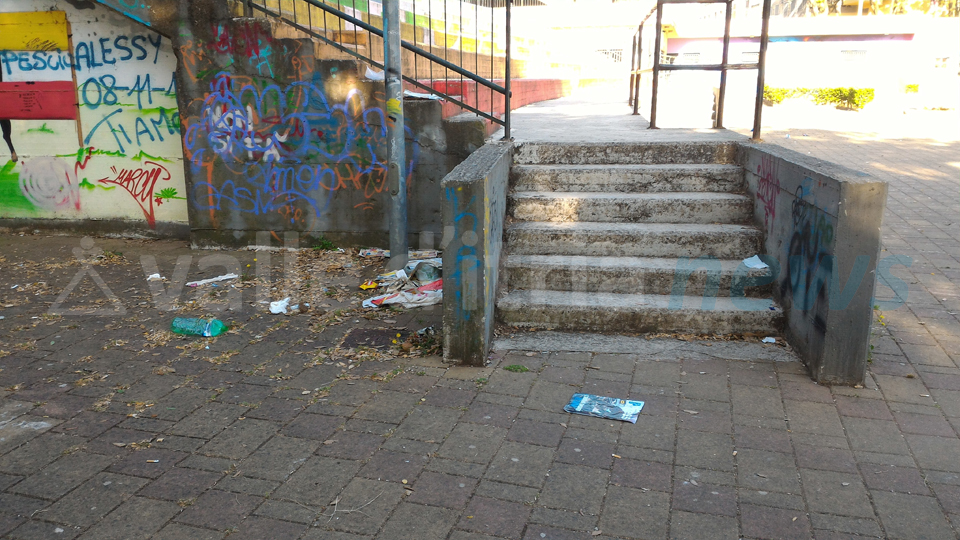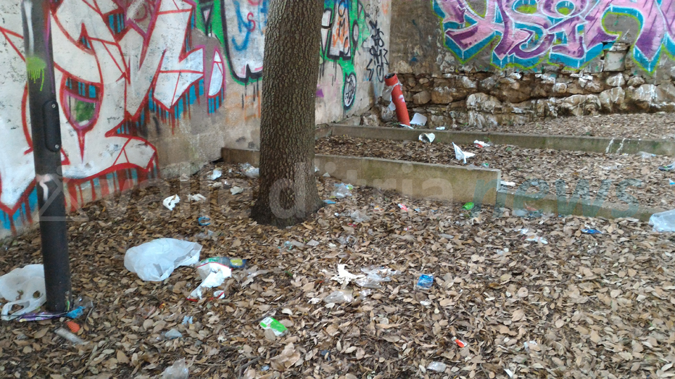 Ogni giorno decine di persone frequentano Villa Carmine. Studenti, turisti, famiglie, comitive di ragazzi e padroni di cani. Lo stato della villa, forse la più bella di Martina Franca, con il suo affaccio sulla Valle d’Itria, è oltre il pietoso. Cartacce, immondizia, cacche di cani, bottiglie rotte, anche aghi. Una villa abbandonata a sè stessa, un luogo che diventa ogni giorno più sporco, segno dell’incuria e dell’incapacità di controllare e di prevenire il disagio. Uno stato che peggiora soprattutto dopo eventi pubblici, come il saggio di danza dello scorso weekend, che ha lasciato sul campo stampelle, brillantini, bottiglie d’acqua.