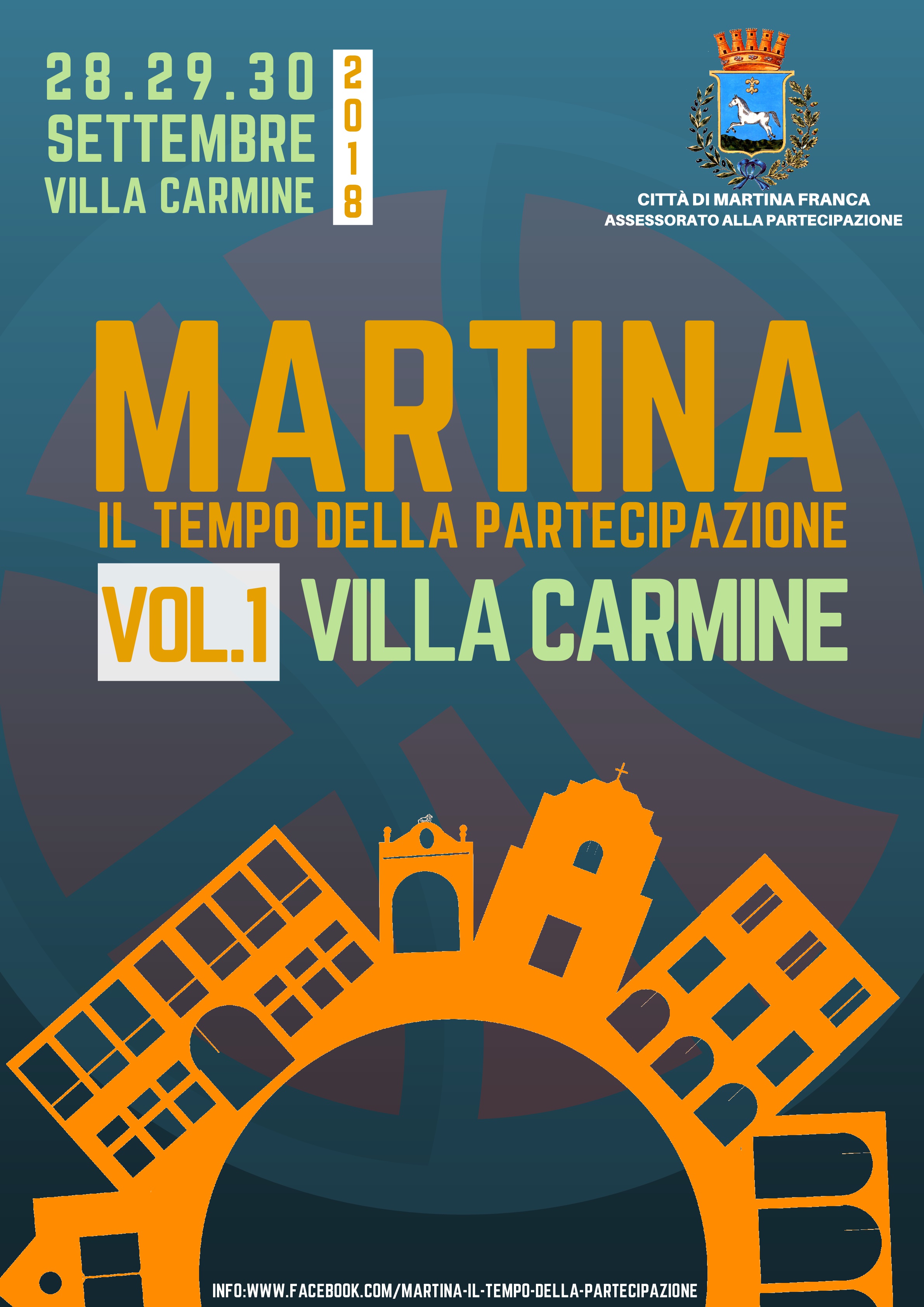 Tutto pronto per l’iniziativa che si svolgerà il prossimo fine settimana (dal 28 al 30 settembre) in Villa Carmine: “Martina- il Tempo della Partecipazione Vol.1 Villa Carmine” organizzata dal Comune di Martina Franca- Assessorato alla Partecipazione e alle Politiche Giovanili.